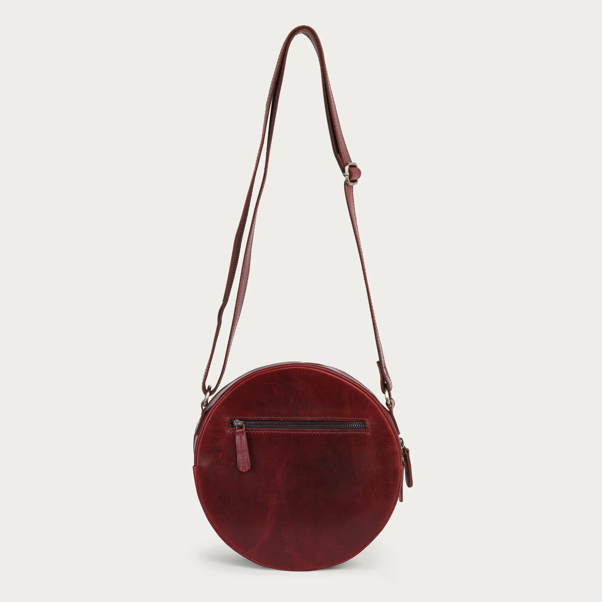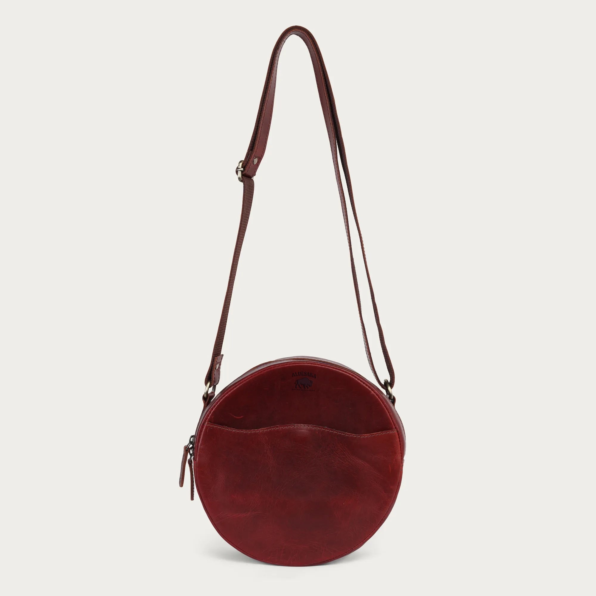 Wine Leather Crossbody Bag – Round Handmade Full Grain Sling for Women