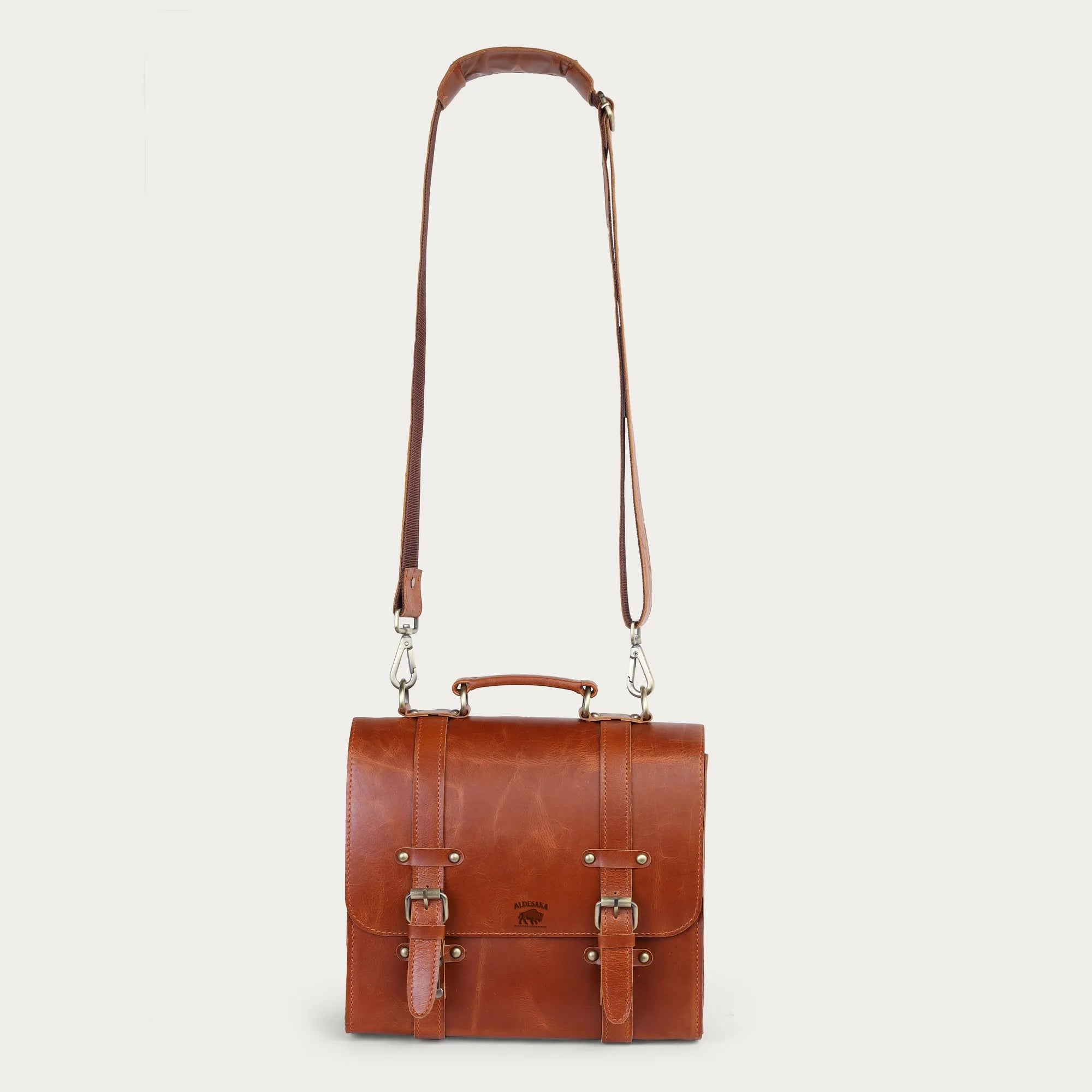 Tan Leather Messenger Bag – Full Grain Business Satchel for Women