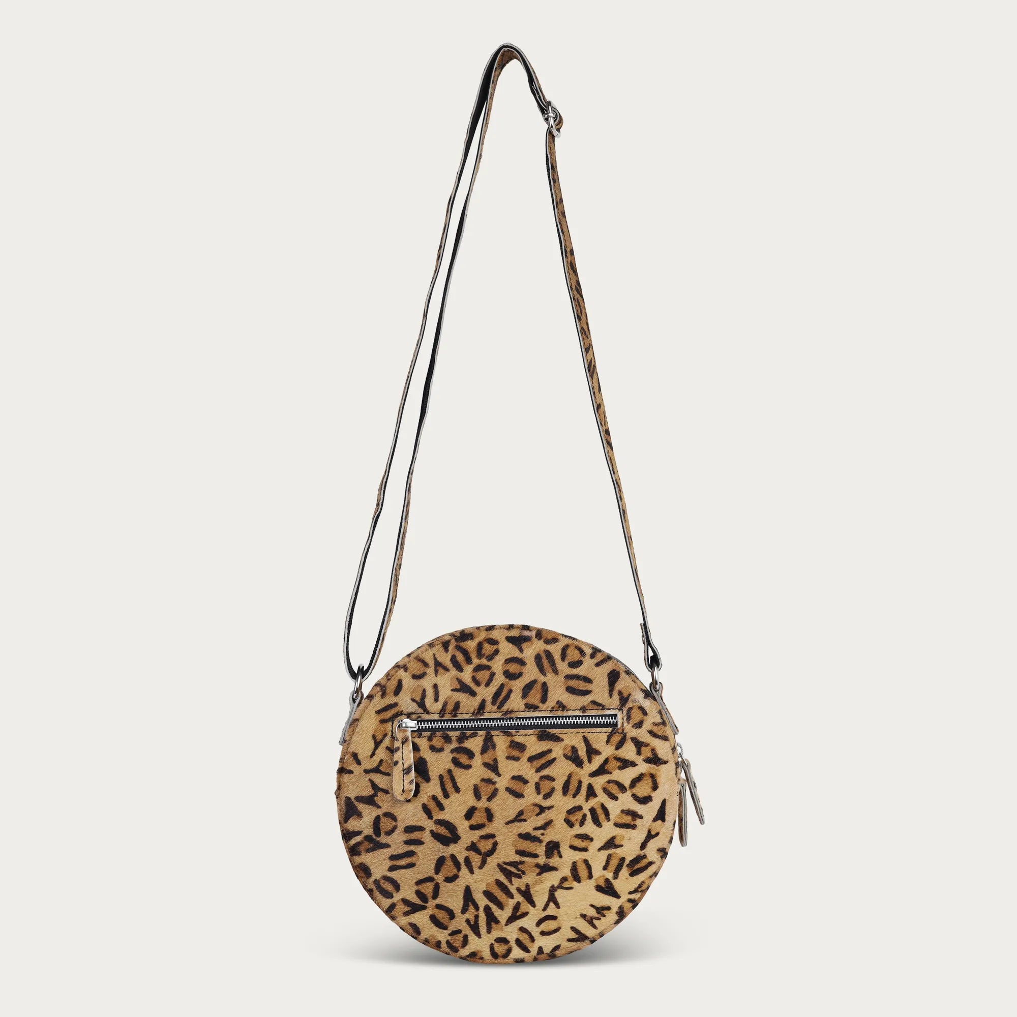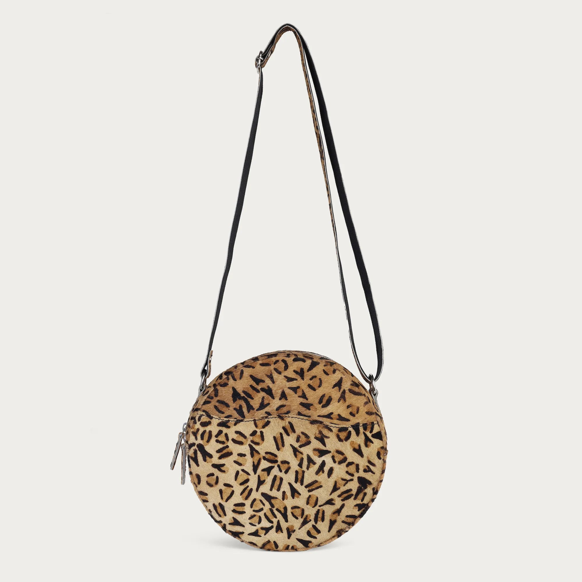 Leopard Hairon Leather Crossbody Bag – Round Handmade Sling for Women