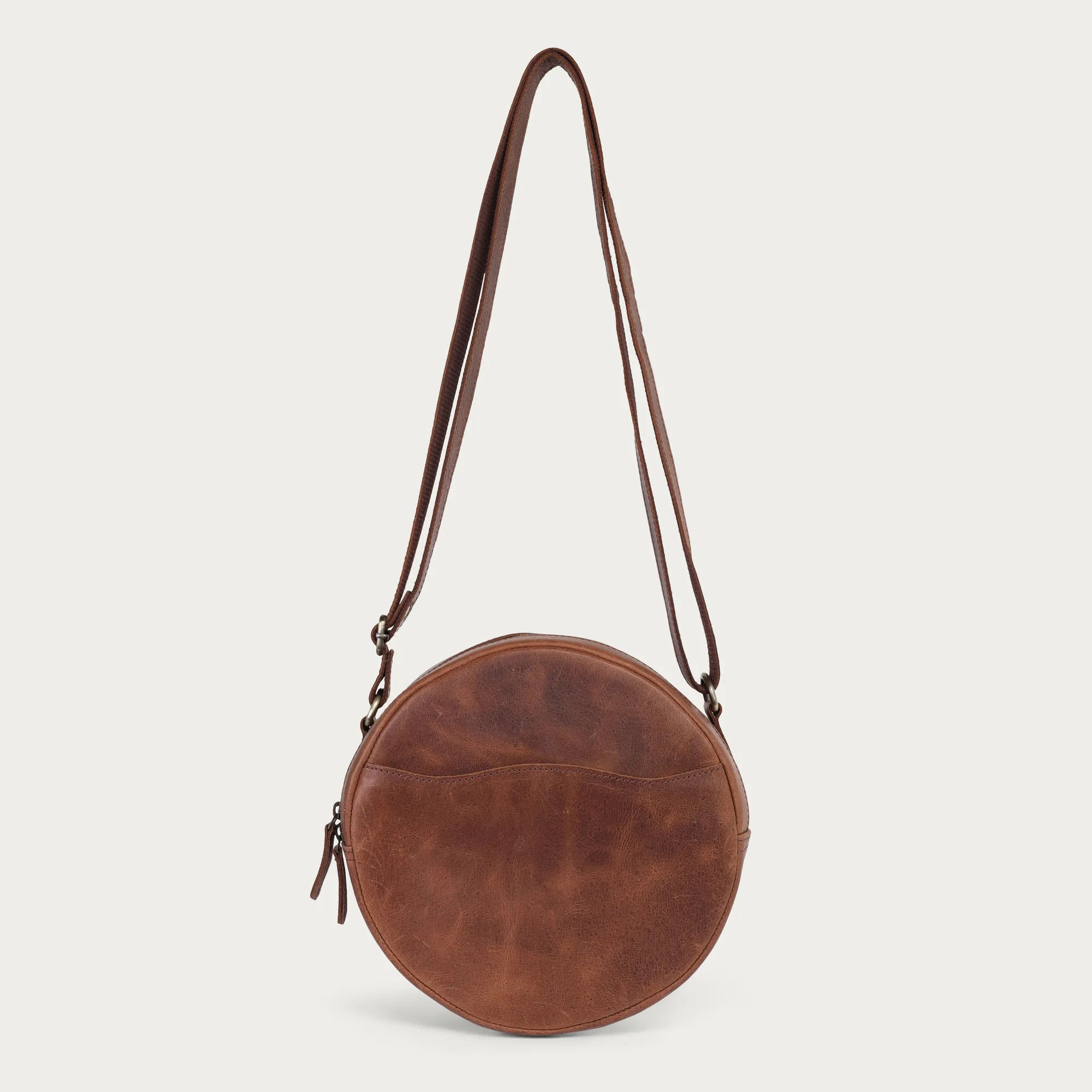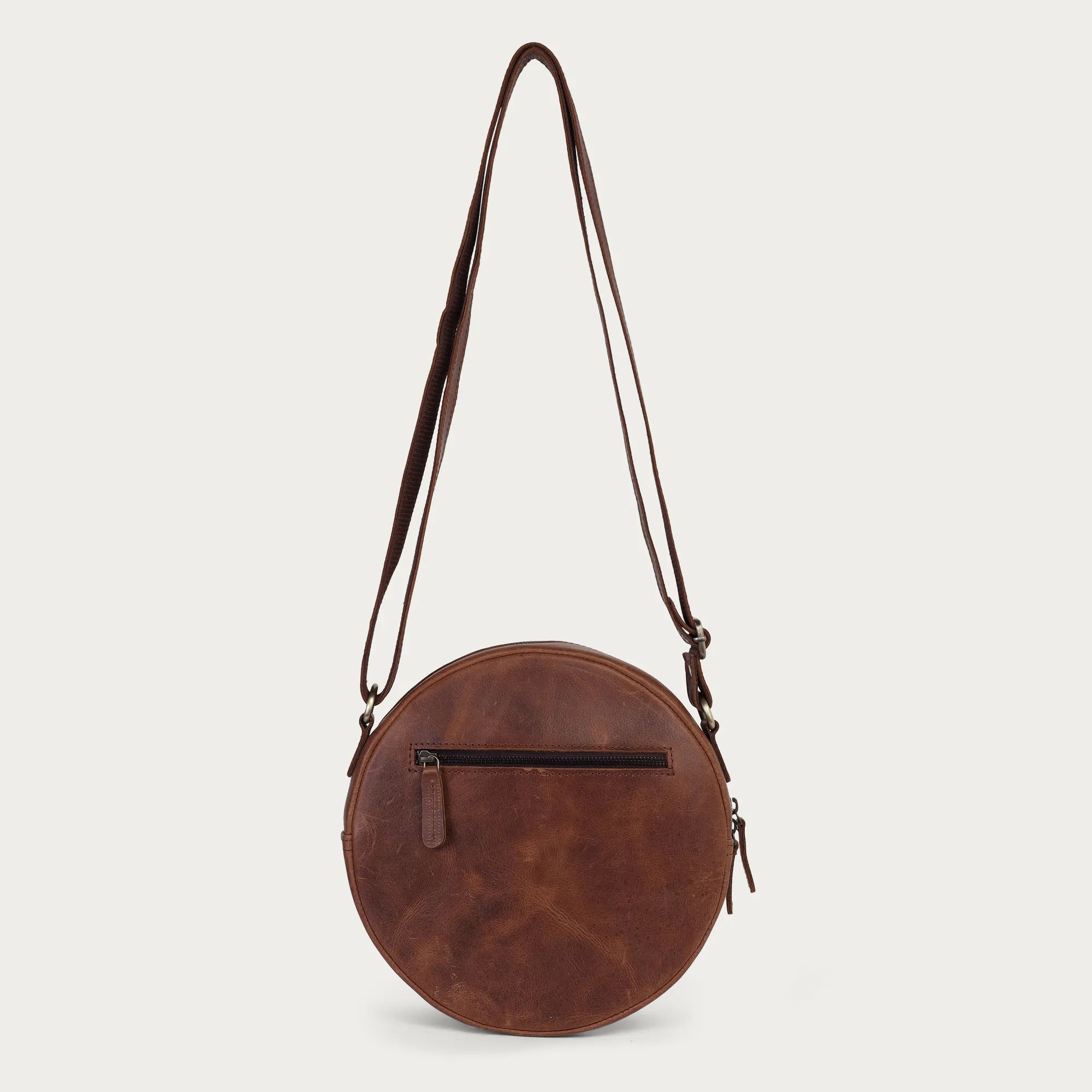 Vintage Brown Leather Crossbody Bag – Handmade Round Full Grain Sling