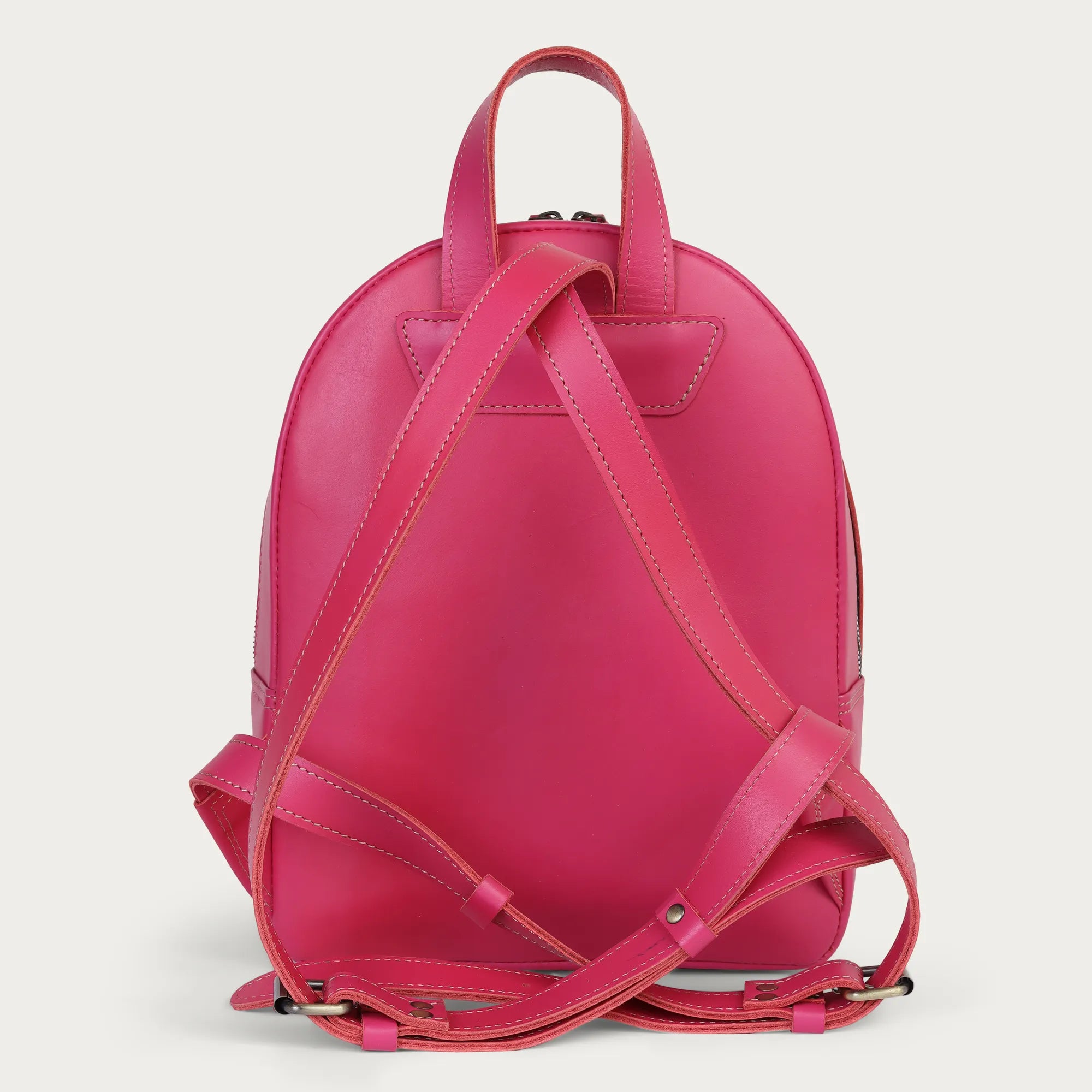 Pink Leather Backpack – Handmade Full Grain Minimalist Bag for Women