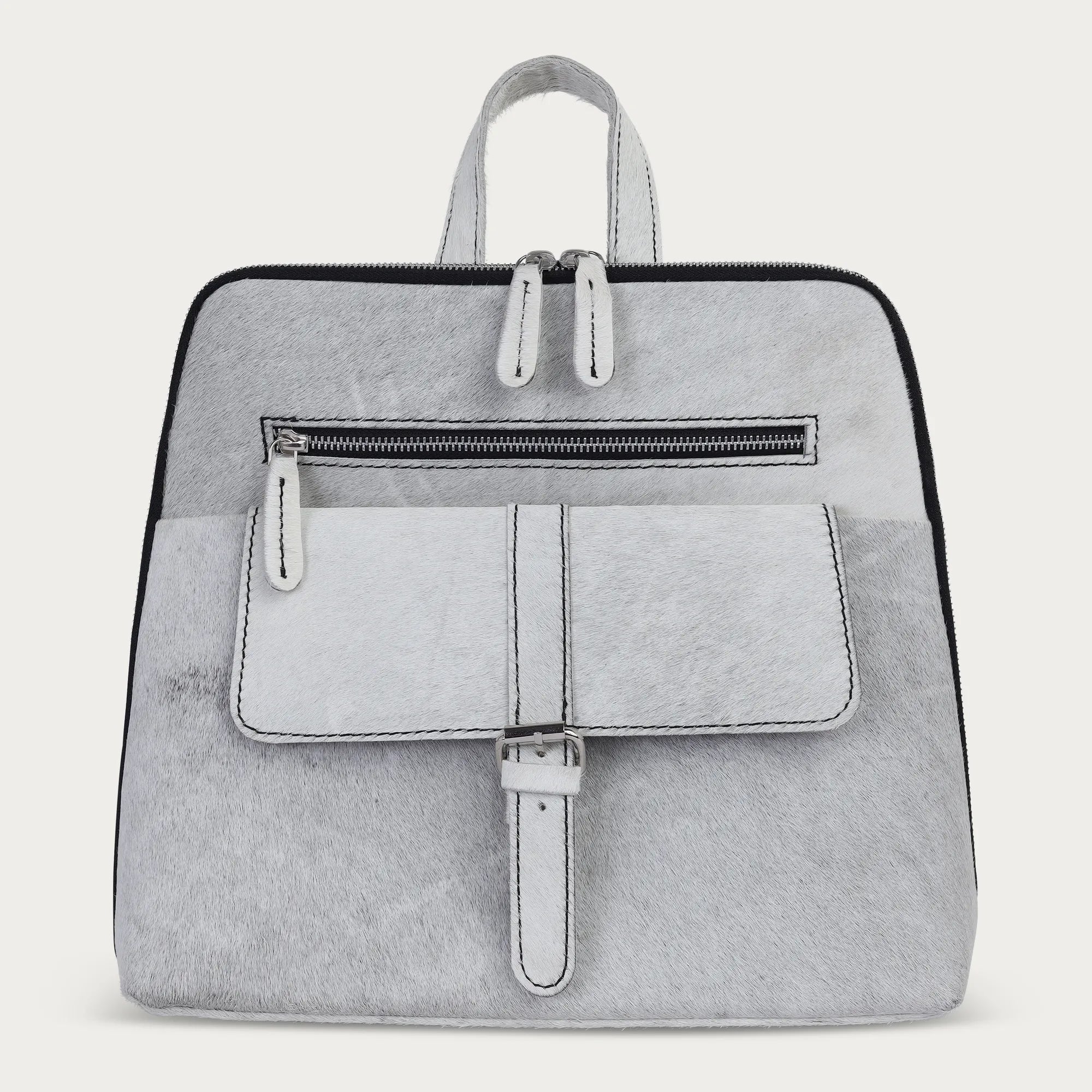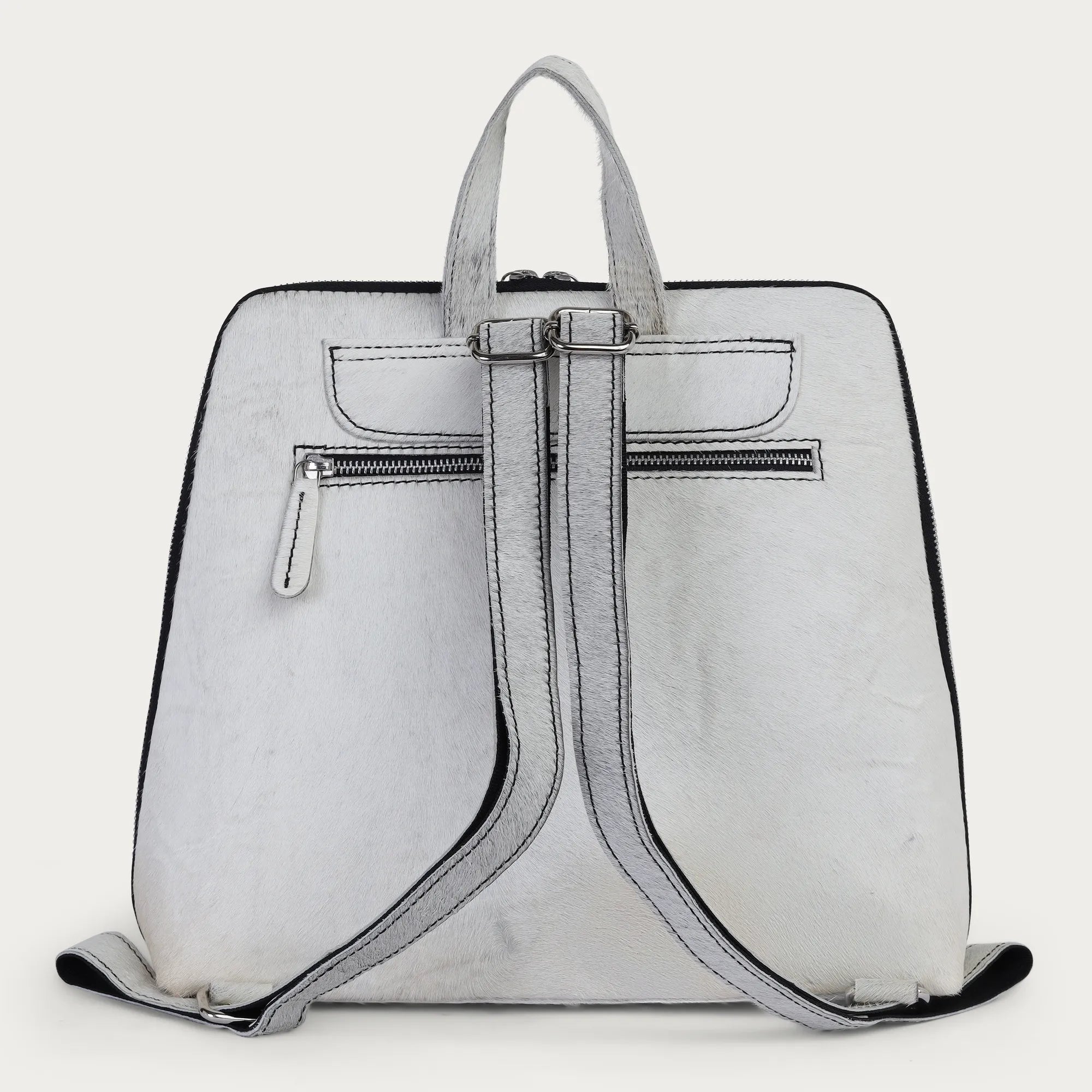 Where form meets individuality — this white hairon leather backpack is a true embodiment of timeless craftsmanship, modern elegance, and everyday functionality.Finishing off with full-grained leather and luxurious white-hair-on hide exterior, these bags embrace their own feel--no two pairs of pieces are alike.