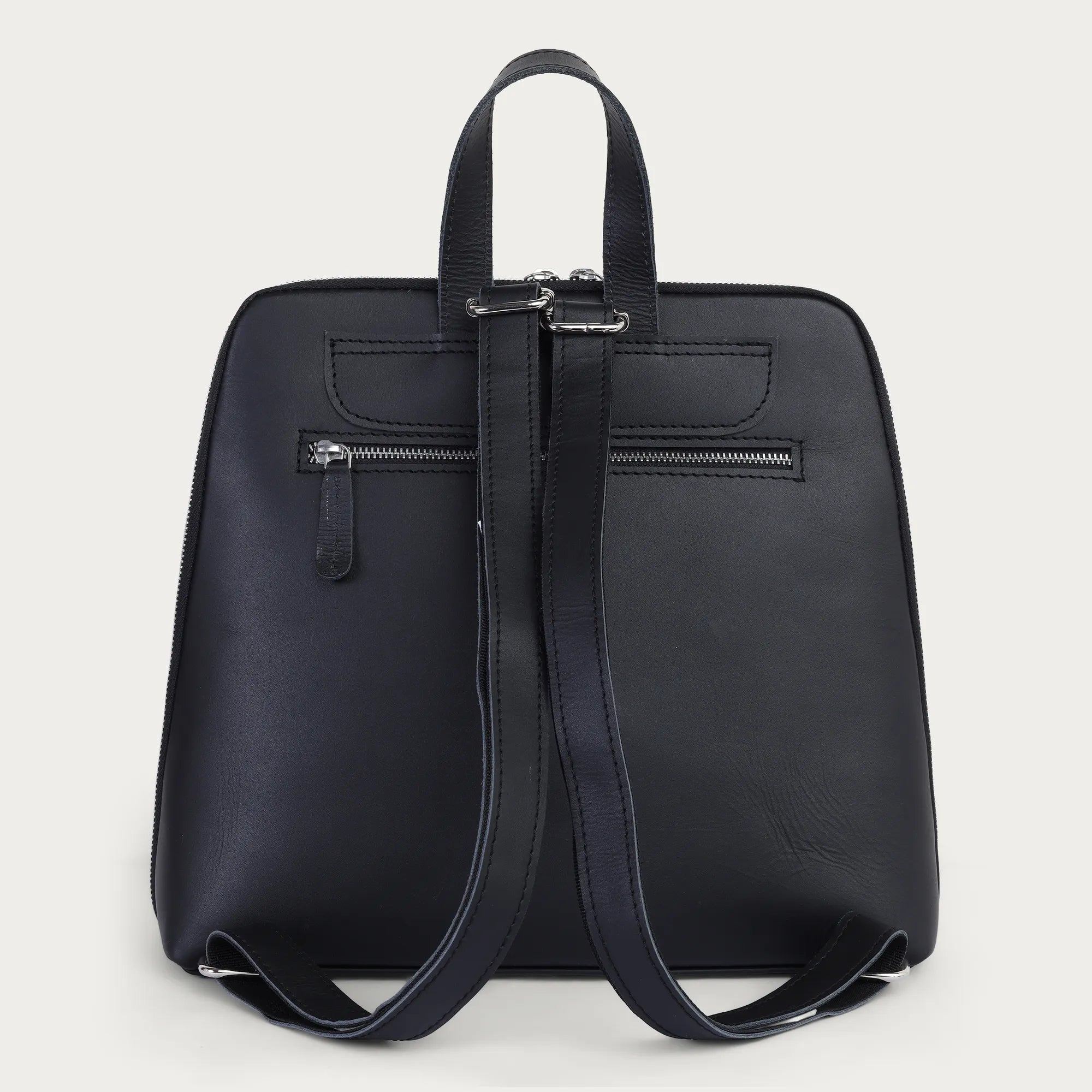 Black Leather Backpack – Handmade Full Grain Leather Daypack for Women