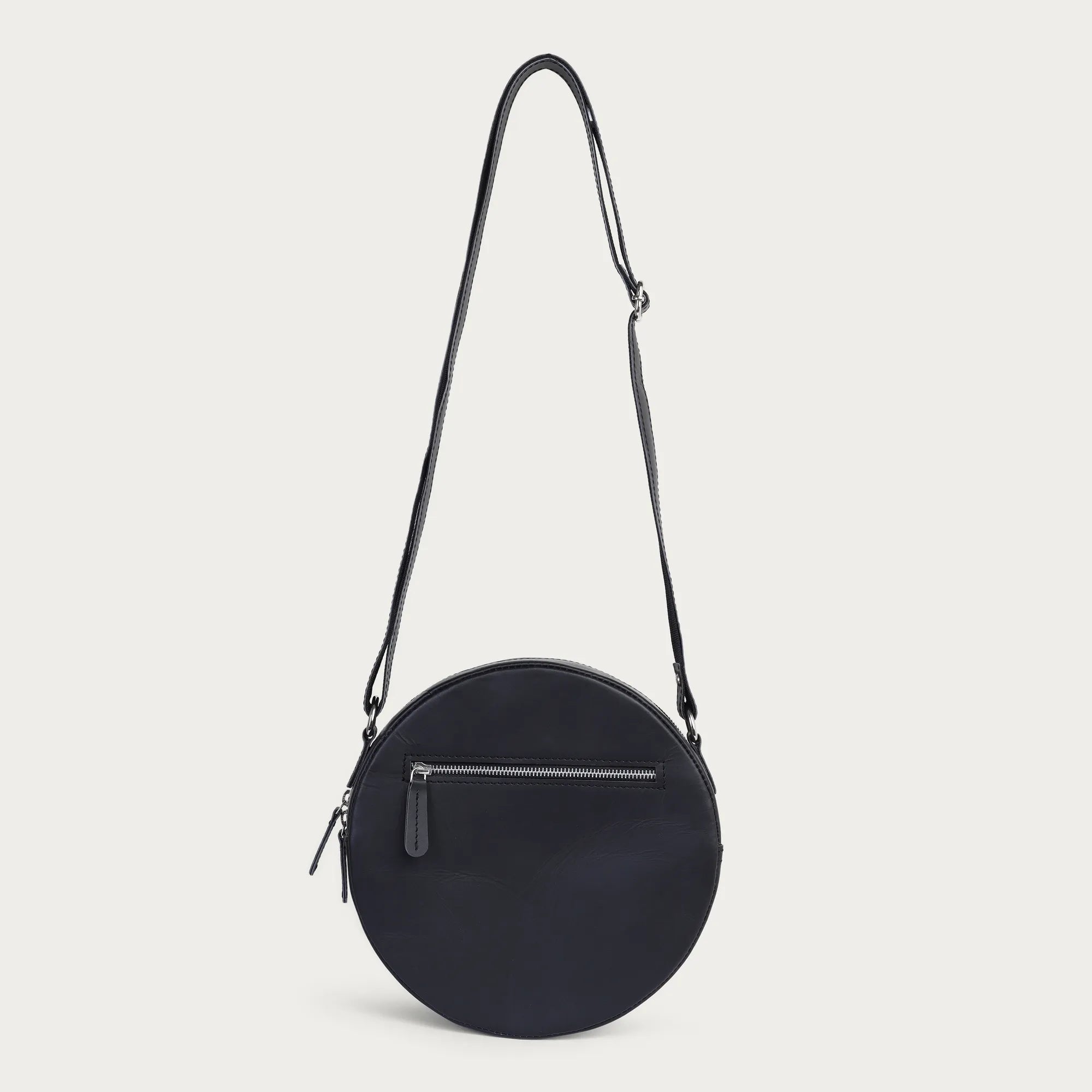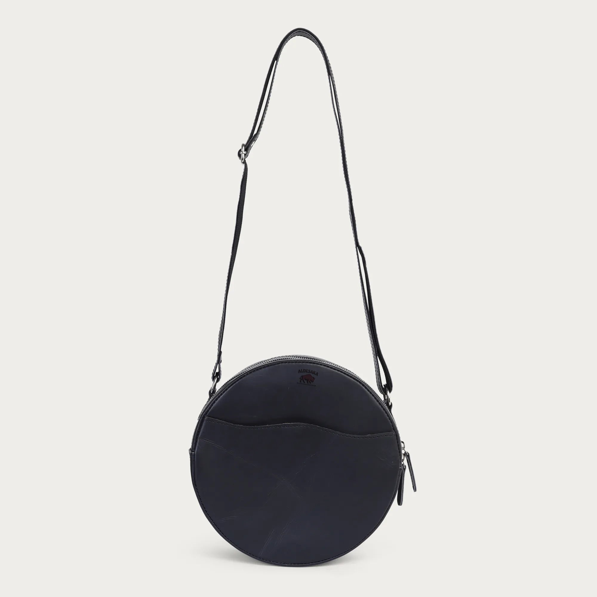 Here we have the black salsa sling bag in a round shape, crafted from supple full-grain leather that just ages well after every wear. Designed for women who cherish simplicity, function, and long-lasting quality, this small crossbody bag is offered in two sizes to fit in with your varied lifestyle-hows for errands, commuting to work, or discovering new places.