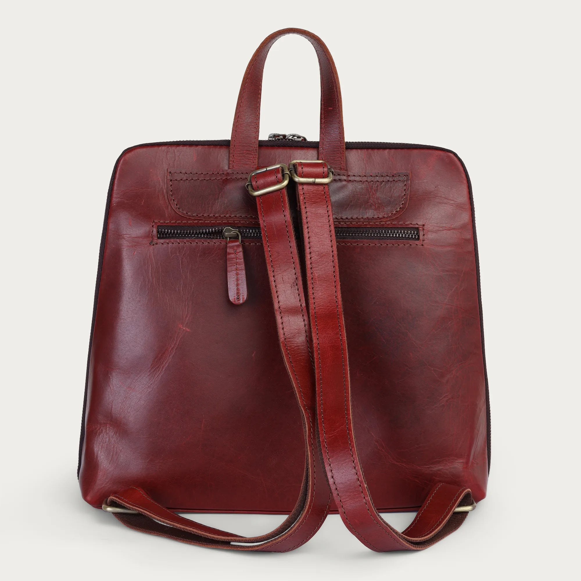 Wine Leather Backpack – Handmade Full Grain Burgundy Backpack for Women